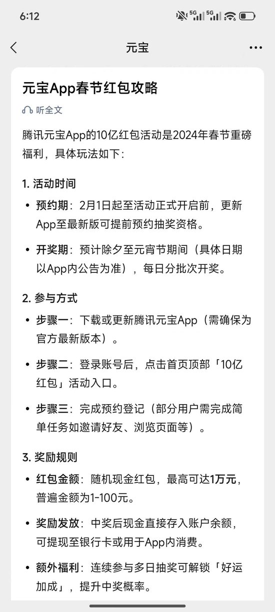 腾讯发布《关于春节分10亿现金的通知》:将在2月1日上线春节活动,用户上元宝APP分10亿现金红包,单个红包金额可达万元。